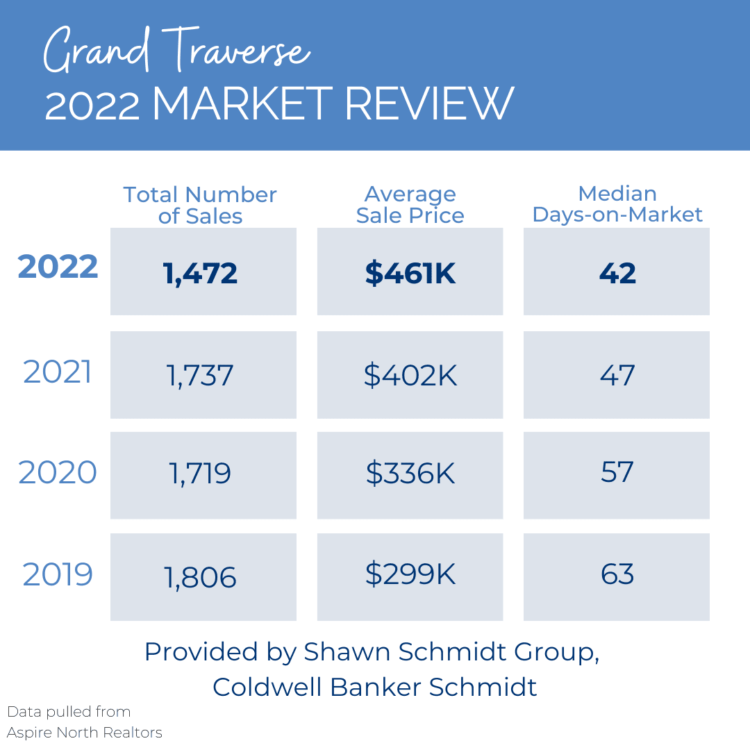 I believe it is simple supply and demand that led to increase price growth in 2022. Despite rates hovering around 6%, there are still many people looking to buy in northern Michigan. More people than available houses for sale. We continue to see families relocating here from all over the country and we remain a retirement hotspot. How many times was northern MI featured in “top 10 places to retire” or “travel hotspot” articles in big publications last year? That press leads to more interest, which leads to more buyers.