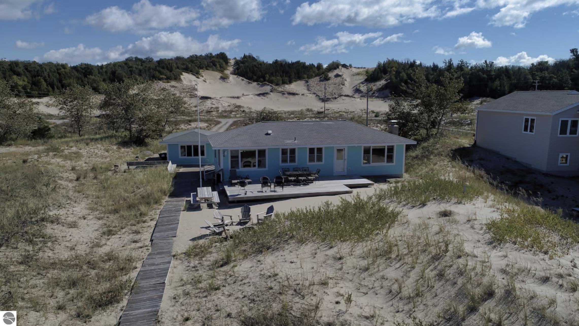 Offers due Thursday, May 29th at noon. The most gorgeous beach in northern Michigan! The Sand Castle home is available! A beautifully updated 4-bedroom, 2-bath ranch home set on 100 feet of private Lake Michigan frontage in the peaceful enclave of Cathead Bay. This rare opportunity offers direct access to one of northern Michigan's most pristine sandy beaches--truly a hidden gem on the tip of the Leelanau Peninsula. The home sits on 0.70 acres surrounded by natural beauty, just minutes from the Grand Traverse Lighthouse and the expansive Leelanau State Park. Recently remodeled in 2023, the home is turnkey and ready to enjoy. Inside, you'll find an inviting layout with an island kitchen, wood-burning fireplace, and bay windows that bring in stunning views of the lake and dunes. The spacious deck is ideal for relaxing or entertaining while taking in unforgettable sunsets. The main home includes three bedrooms and two full bathrooms, including a primary suite with a large soaking tub and shower. A detached bunkhouse adds additional sleeping space, with a new mini-split air conditioning unit installed for comfort--perfect for guests or kids, though it does not have a bathroom. With a peaceful setting just 15 minutes from downtown Northport, this home blends comfort, seclusion, and the best of northern Michigan living. Whether you're looking to enjoy the shoreline, explore the state park dunes, or visit nearby towns like Leland, Suttons Bay, and Traverse City, this property offers the perfect lakefront escape.